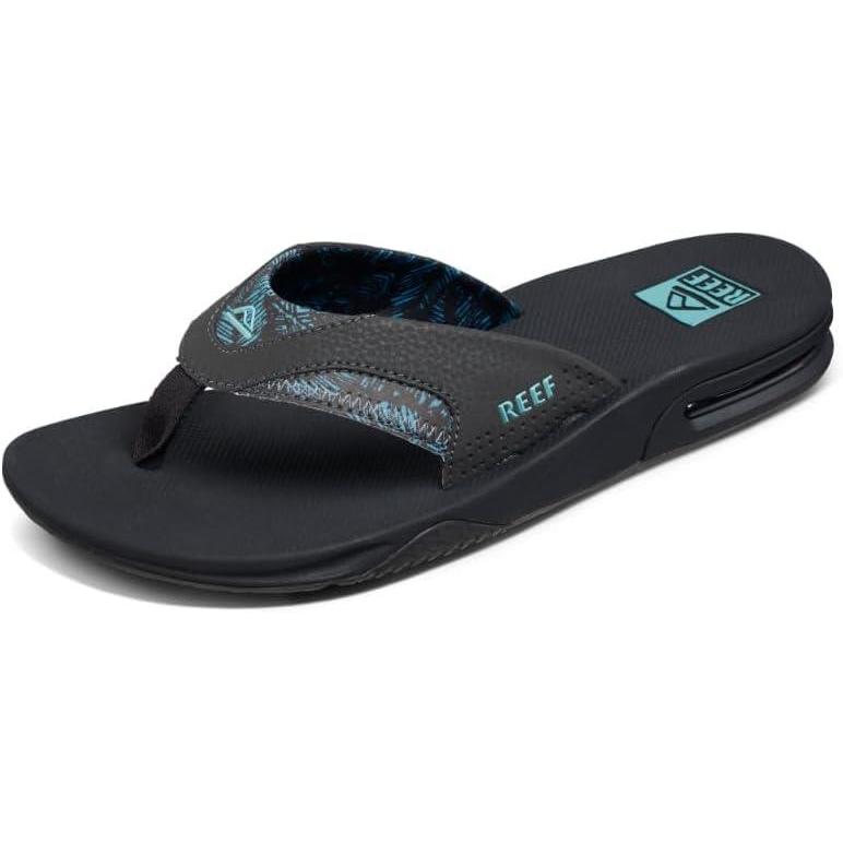 REEF Men’s Fanning Bottle Opener Flip Flops(Aquifer Palm)