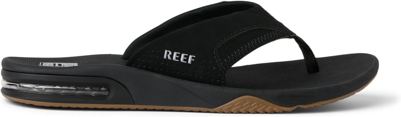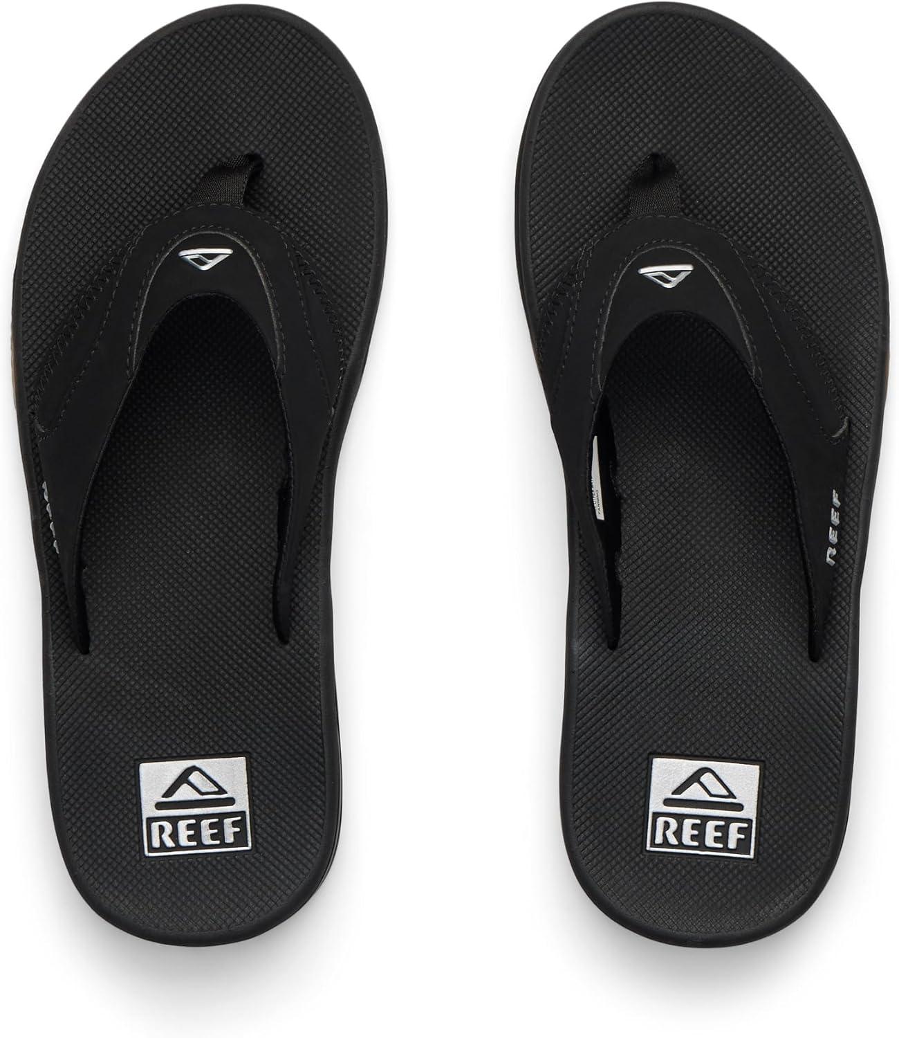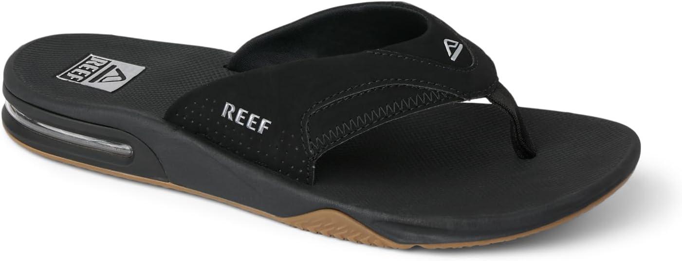 REEF Men’s Fanning Bottle Opener Flip Flops(Black/Silver)