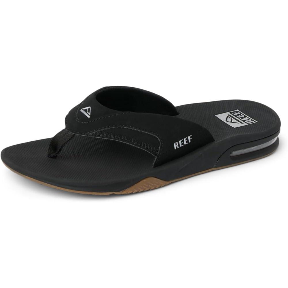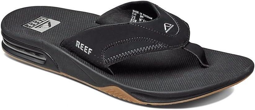 imageREEF Mens Fanning Bottle Opener Flip FlopsBlackSilver