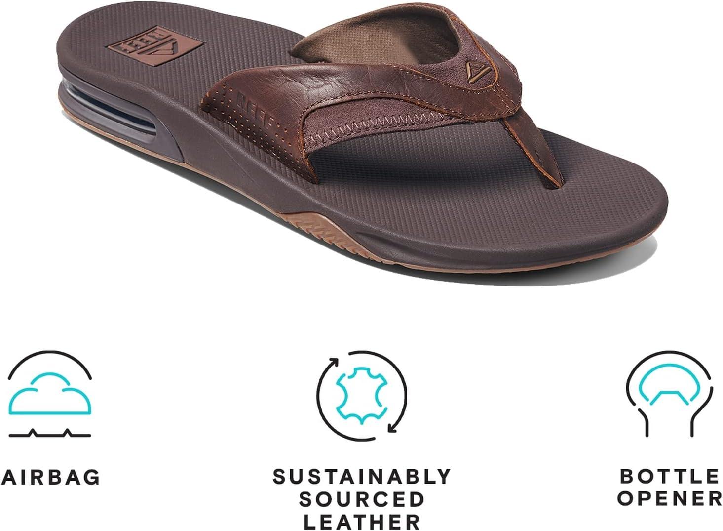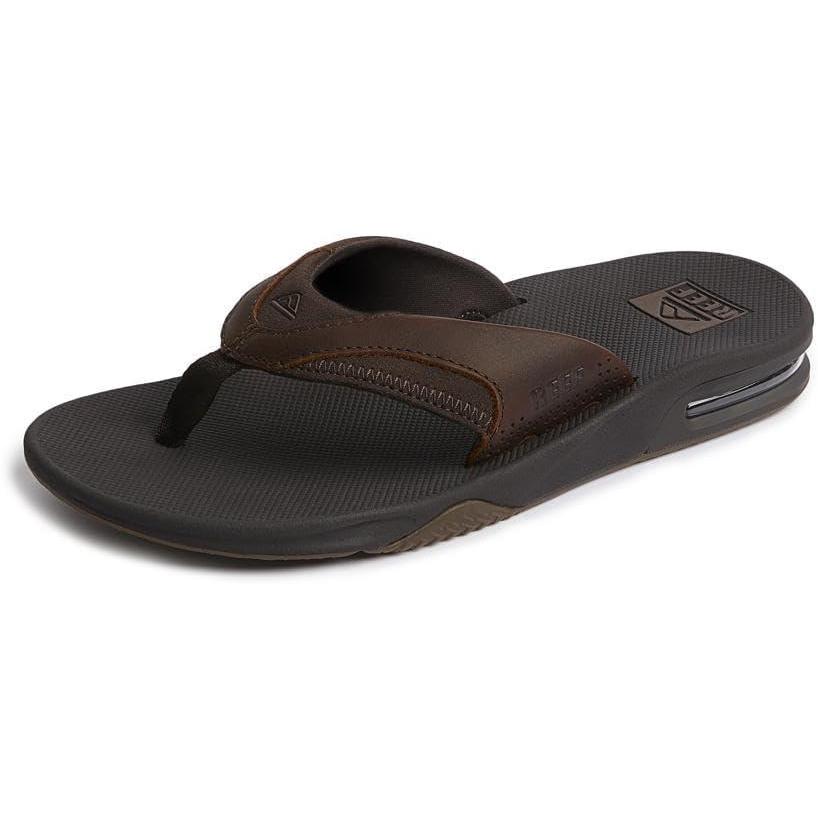 REEF Men’s Fanning Bottle Opener Flip Flops(Dark Brown)