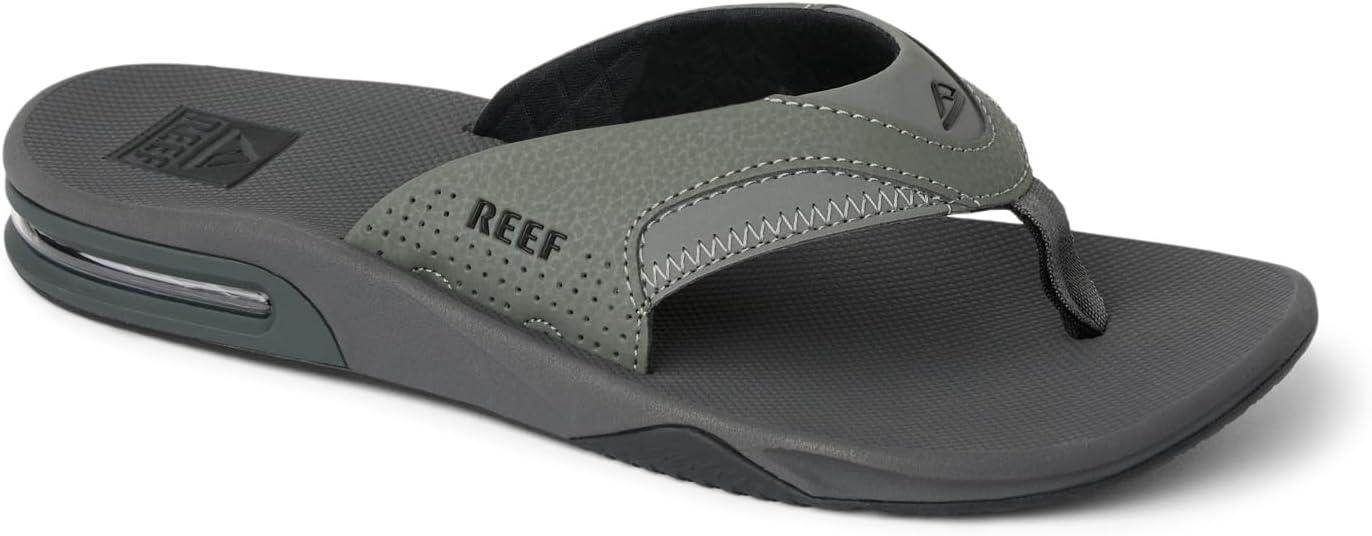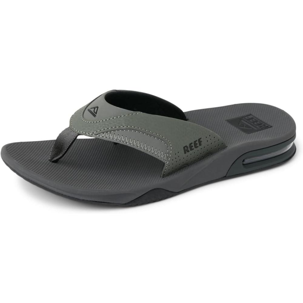REEF Men’s Fanning Bottle Opener Flip Flops(Grey Black)