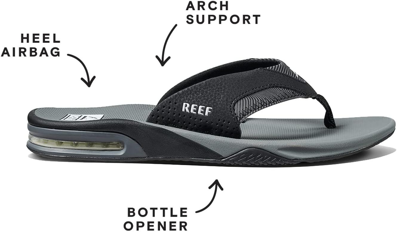 REEF Men’s Fanning Bottle Opener Flip Flops(Charcoal/Tan)