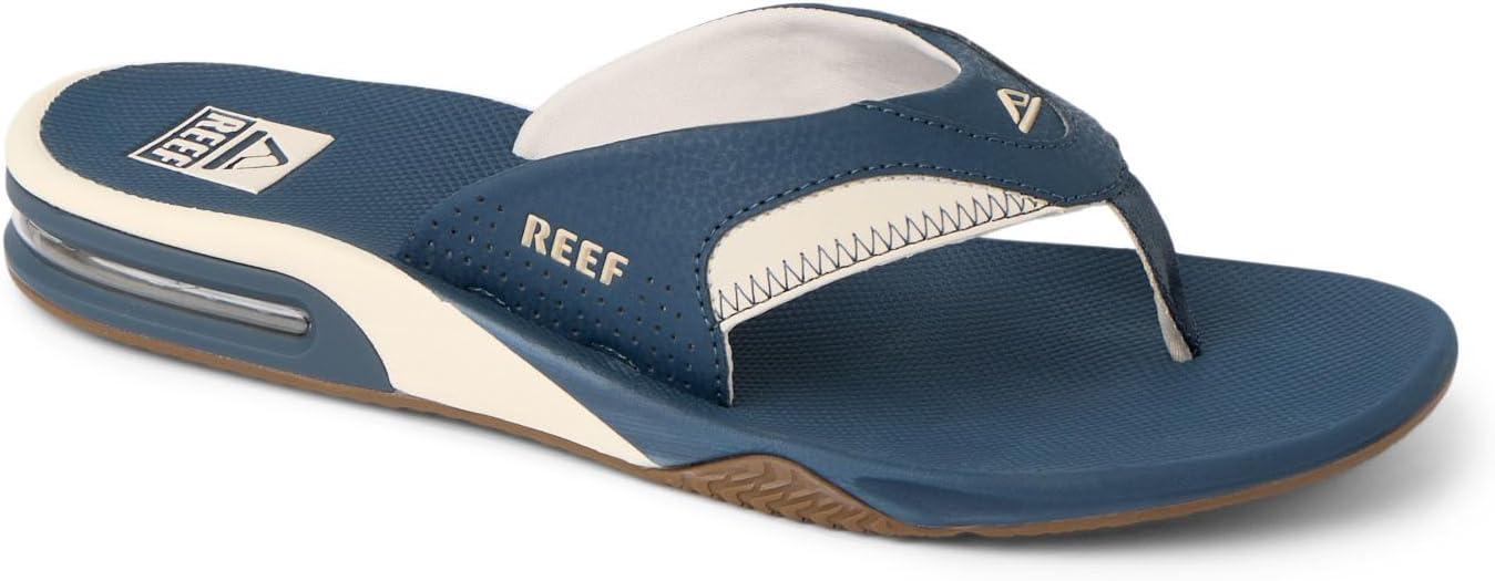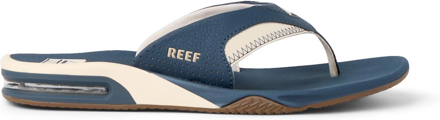 REEF Men’s Fanning Bottle Opener Flip Flops(Navy/Oat)
