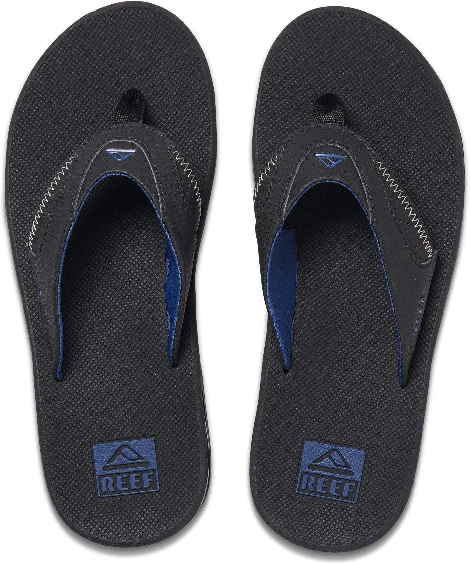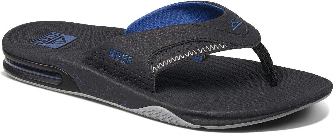 REEF Men’s Fanning Bottle Opener Flip Flops(Raven/Blue 2)