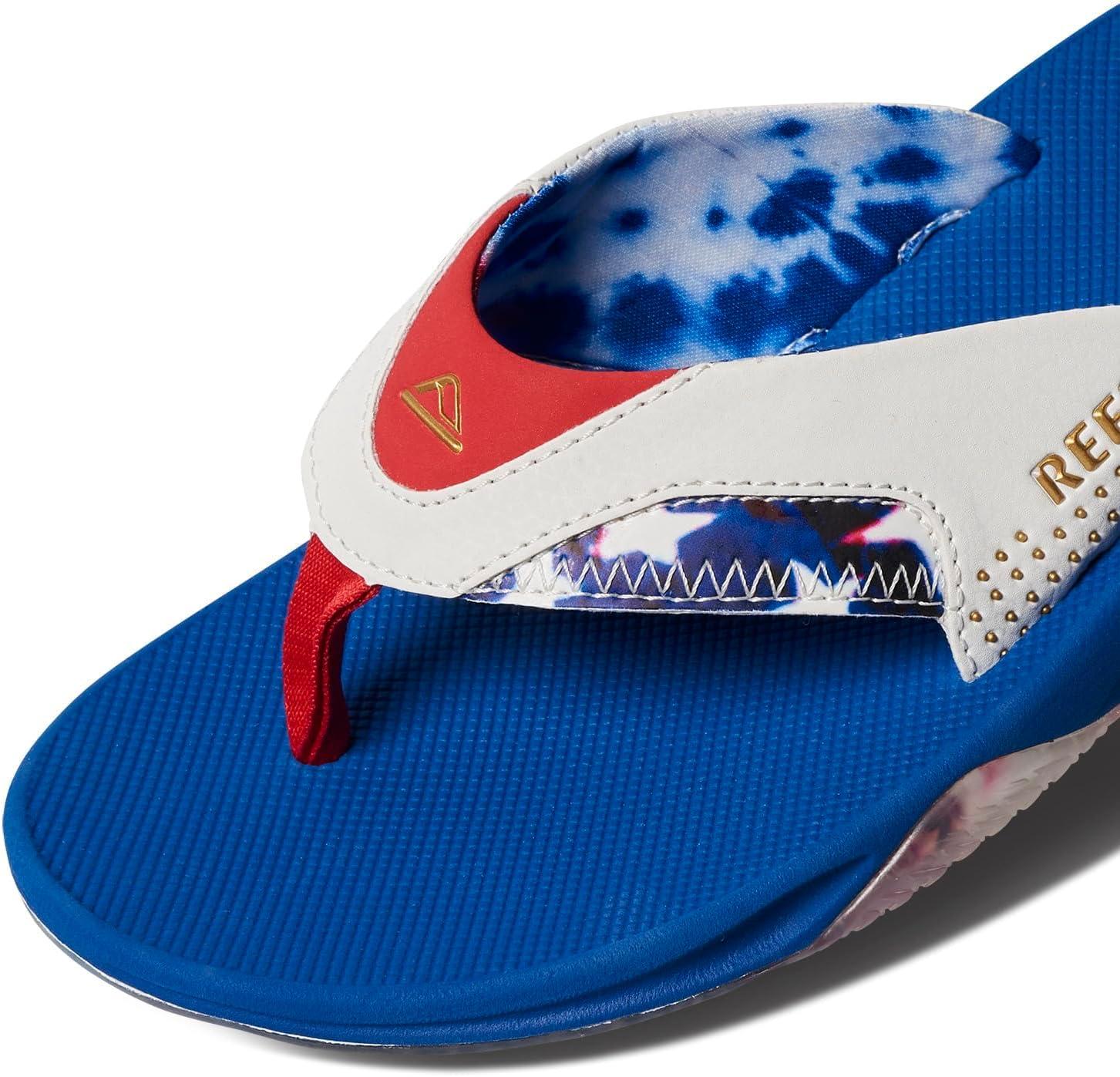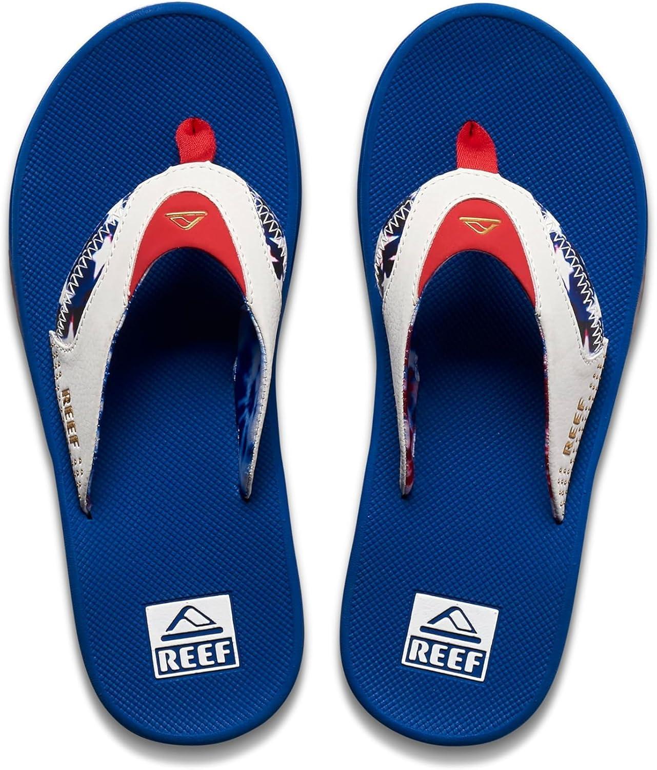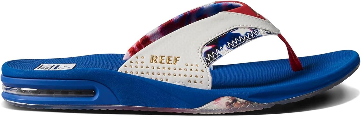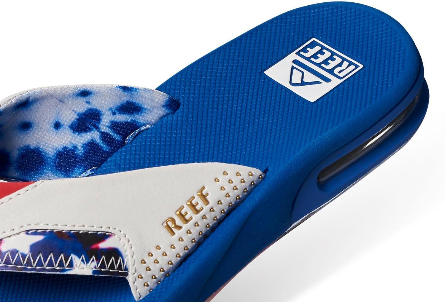 REEF Men’s Fanning Bottle Opener Flip Flops(Red White and Blue)
