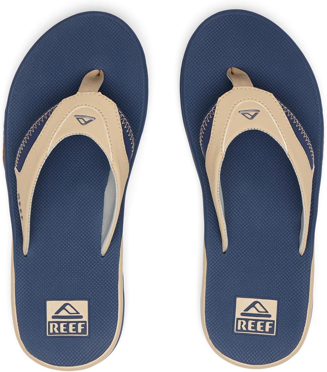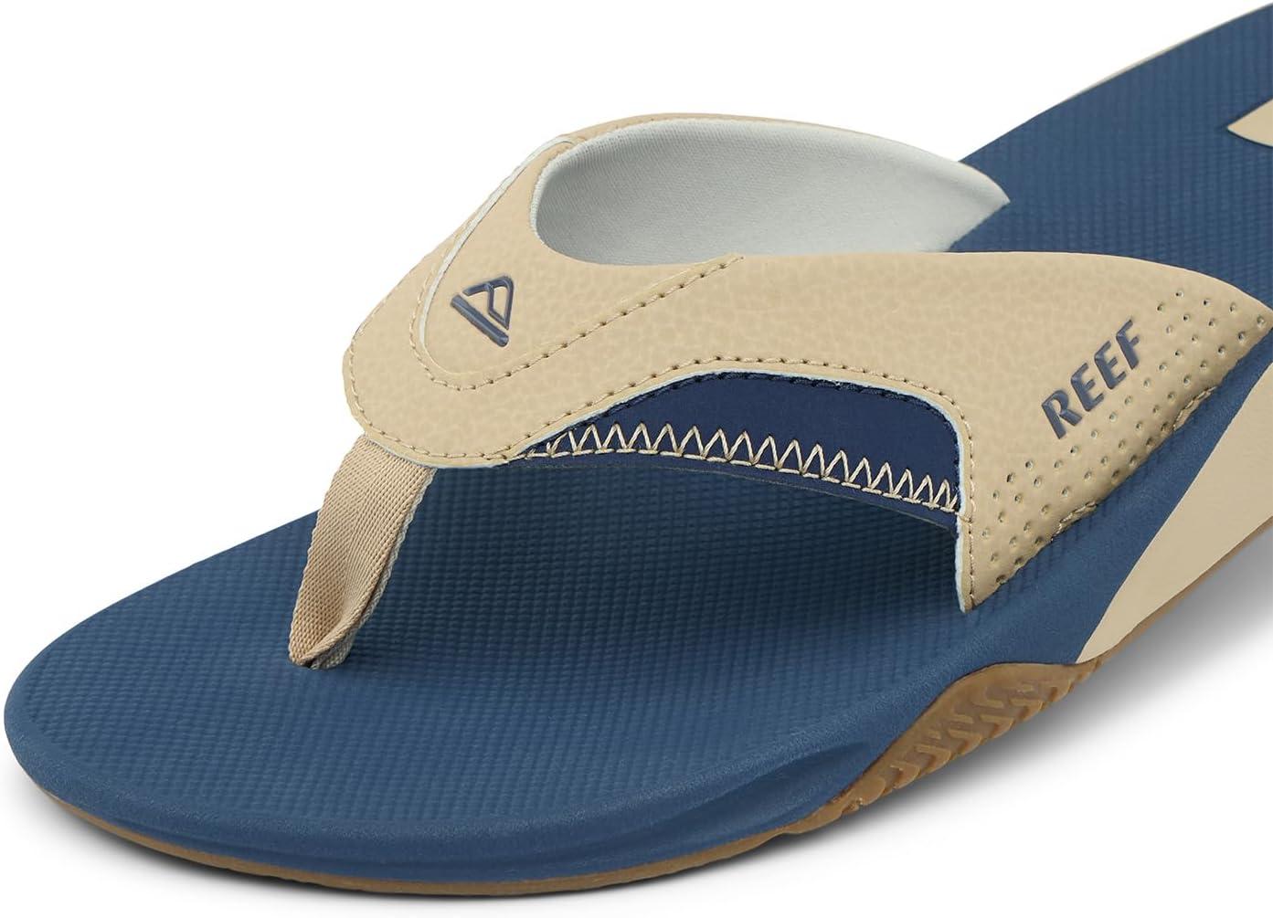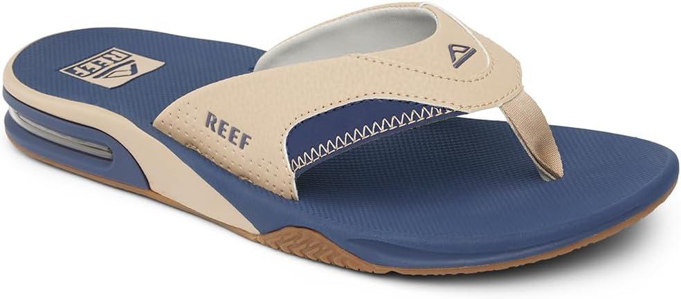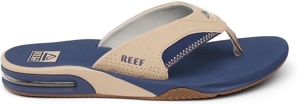 REEF Men’s Fanning Bottle Opener Flip Flops(Tan/Navy/Tan)