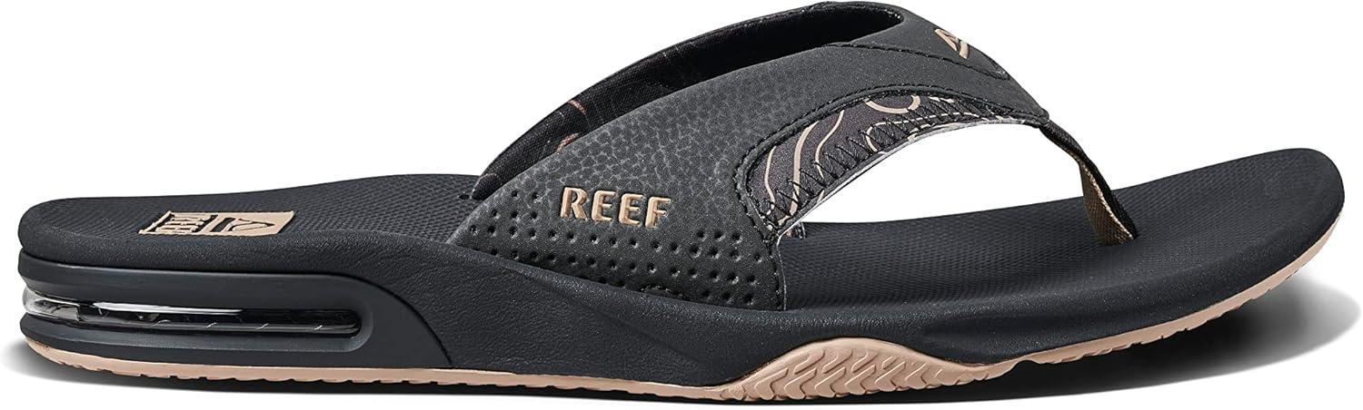 REEF Men’s Fanning Bottle Opener Flip Flops(Tan Topo)