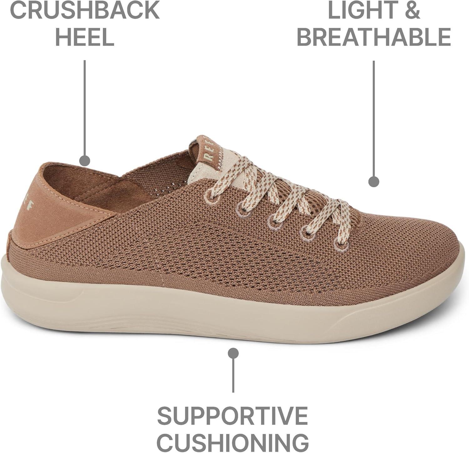 Your all day, every day, go anywhere shoe is here. Classic styling comes to the unmatched comfort and ease that is REEF’s hallmark. The SWELLsole Neptune takes you anywhere, from slipping on with the crush-back heel for morning coffee runs to go-with-everything styling for a casual night out. The breathable, flexible, engineered knit upper combines with our lightweight EVA bottom and classic REEF cushion insole to bring a seamless fit to your seamless versatility. This style fastens with a traditional lace closure.