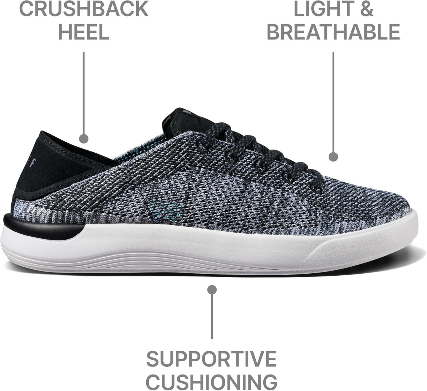 Your all day, every day, go anywhere shoe is here. Classic styling comes to the unmatched comfort and ease that is REEF’s hallmark. The SWELLsole Neptune takes you anywhere, from slipping on with the crush-back heel for morning coffee runs to go-with-everything styling for a casual night out. The breathable, flexible, engineered knit upper combines with our lightweight EVA bottom and classic REEF cushion insole to bring a seamless fit to your seamless versatility. This style fastens with a traditional lace closure.