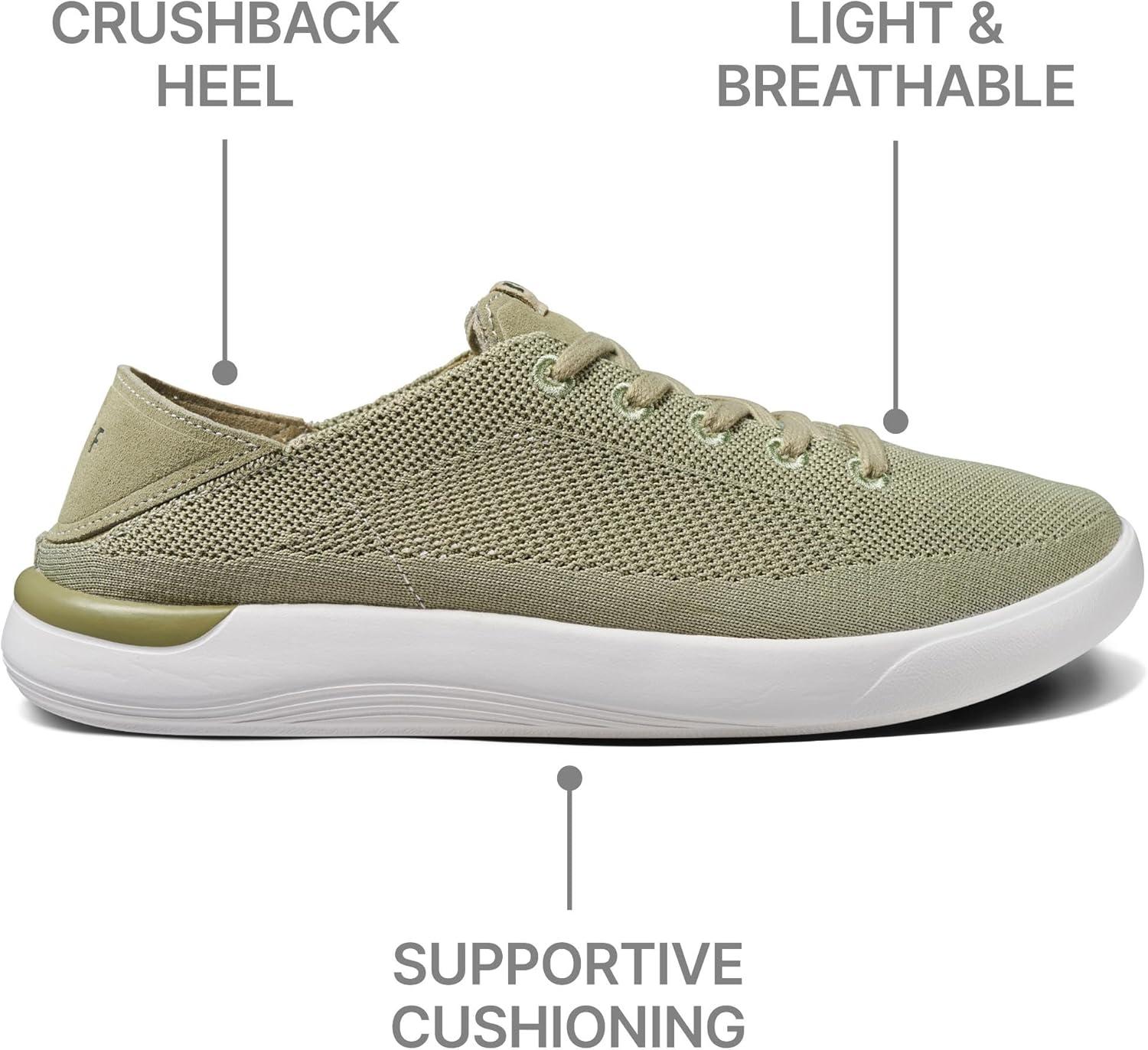 Your all day, every day, go anywhere shoe is here. Classic styling comes to the unmatched comfort and ease that is REEF’s hallmark. The SWELLsole Neptune takes you anywhere, from slipping on with the crush-back heel for morning coffee runs to go-with-everything styling for a casual night out. The breathable, flexible, engineered knit upper combines with our lightweight EVA bottom and classic REEF cushion insole to bring a seamless fit to your seamless versatility. This style fastens with a traditional lace closure.