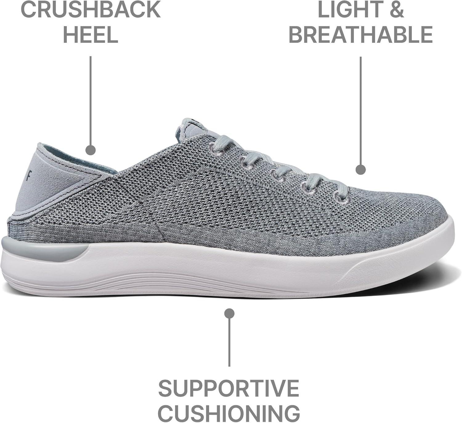 Your all day, every day, go anywhere shoe is here. Classic styling comes to the unmatched comfort and ease that is REEF’s hallmark. The SWELLsole Neptune takes you anywhere, from slipping on with the crush-back heel for morning coffee runs to go-with-everything styling for a casual night out. The breathable, flexible, engineered knit upper combines with our lightweight EVA bottom and classic REEF cushion insole to bring a seamless fit to your seamless versatility. This style fastens with a traditional lace closure.