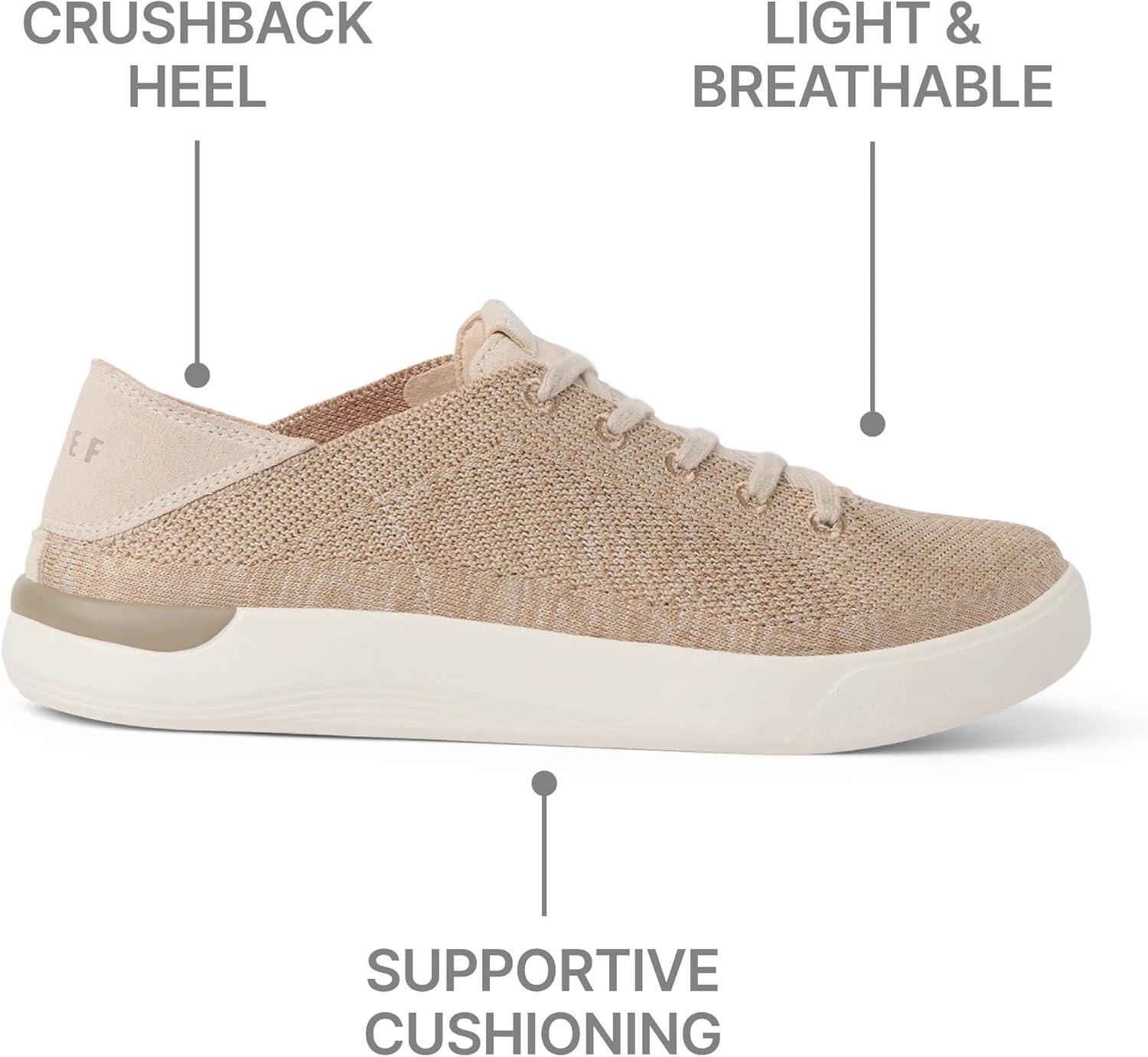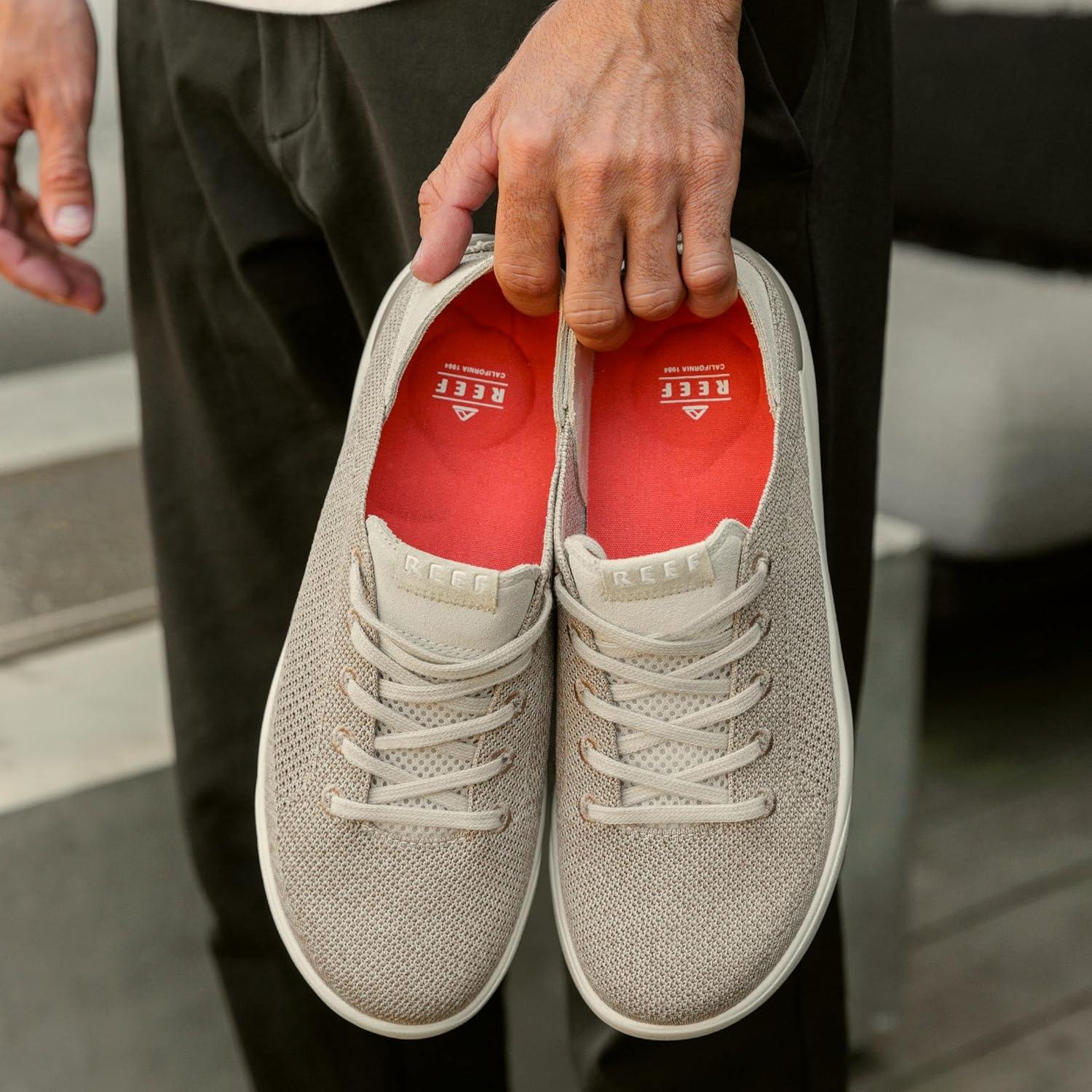 Your all day, every day, go anywhere shoe is here. Classic styling comes to the unmatched comfort and ease that is REEF’s hallmark. The SWELLsole Neptune takes you anywhere, from slipping on with the crush-back heel for morning coffee runs to go-with-everything styling for a casual night out. The breathable, flexible, engineered knit upper combines with our lightweight EVA bottom and classic REEF cushion insole to bring a seamless fit to your seamless versatility. This style fastens with a traditional lace closure.