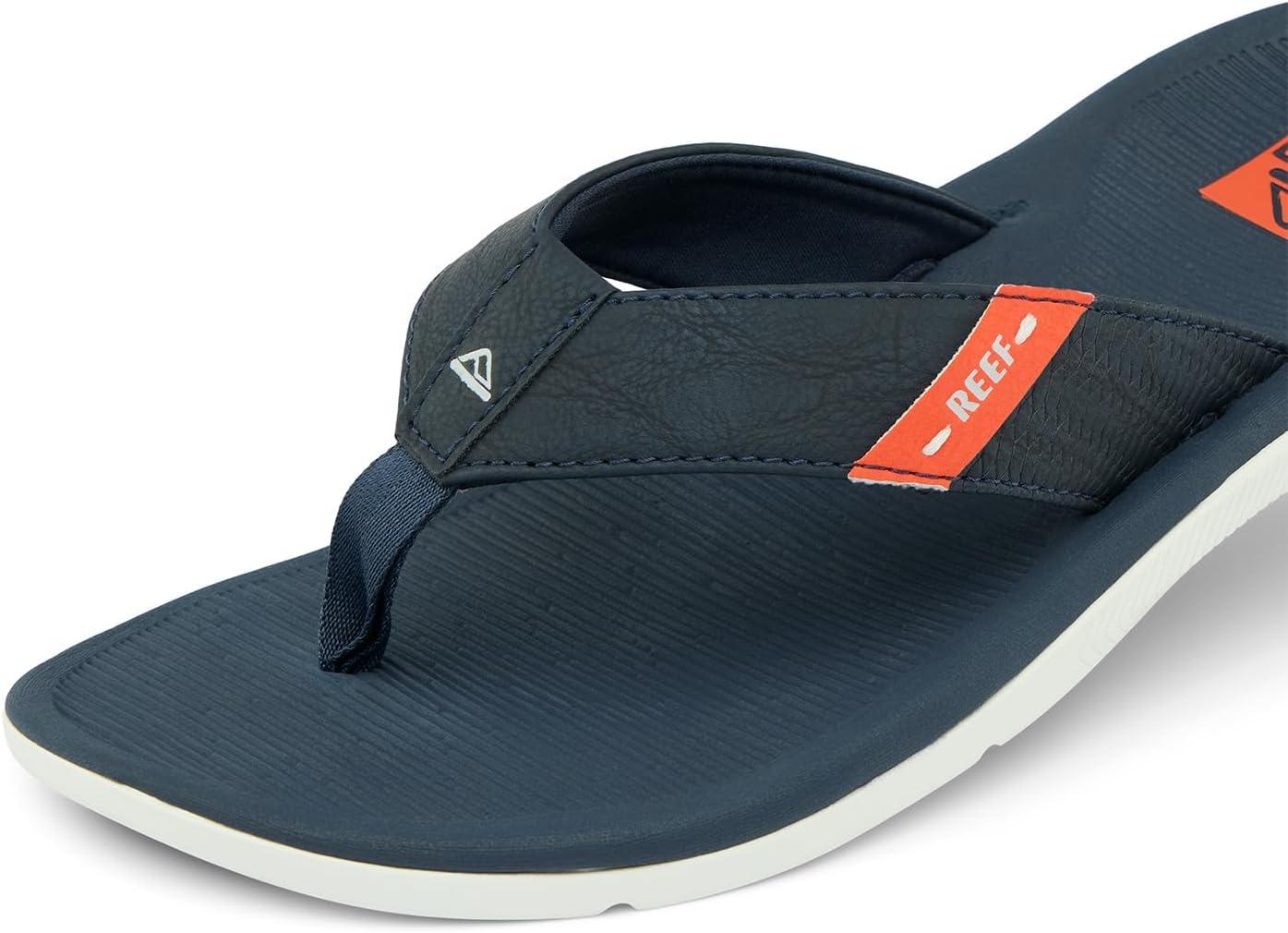 REEF Santa Ana Men's Flip Flop, Arch Support, Water Friendly, Non Marking Outsole(Navy/White/Orange)