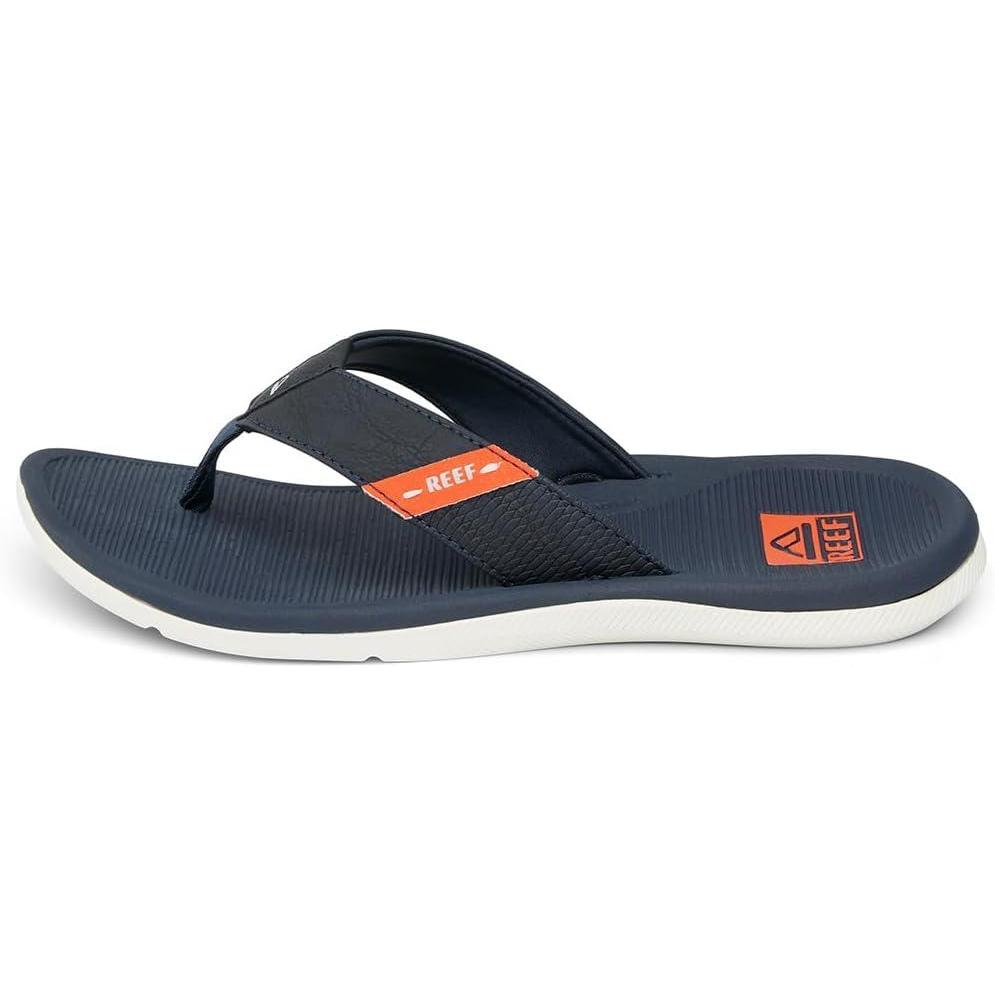 REEF Santa Ana Men’s Flip Flop, Arch Support, Water Friendly, Non Marking Outsole(Navy/White/Orange)