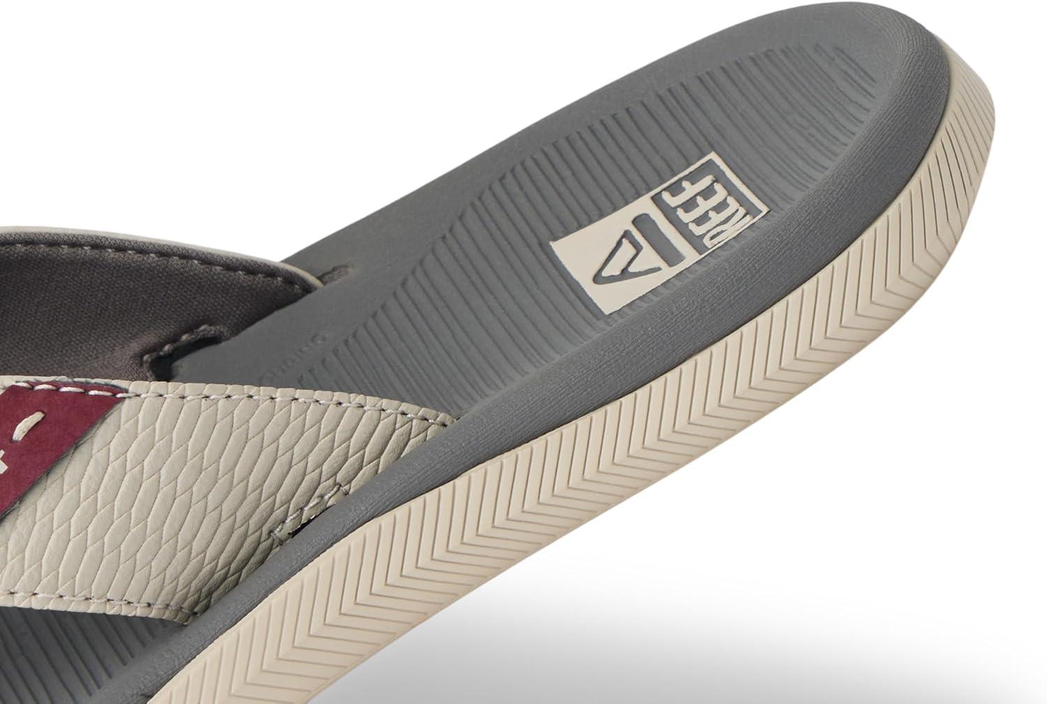 REEF Santa Ana Men's Flip Flop, Arch Support, Water Friendly, Non Marking Outsole(Tan/Grey/Maroon)
