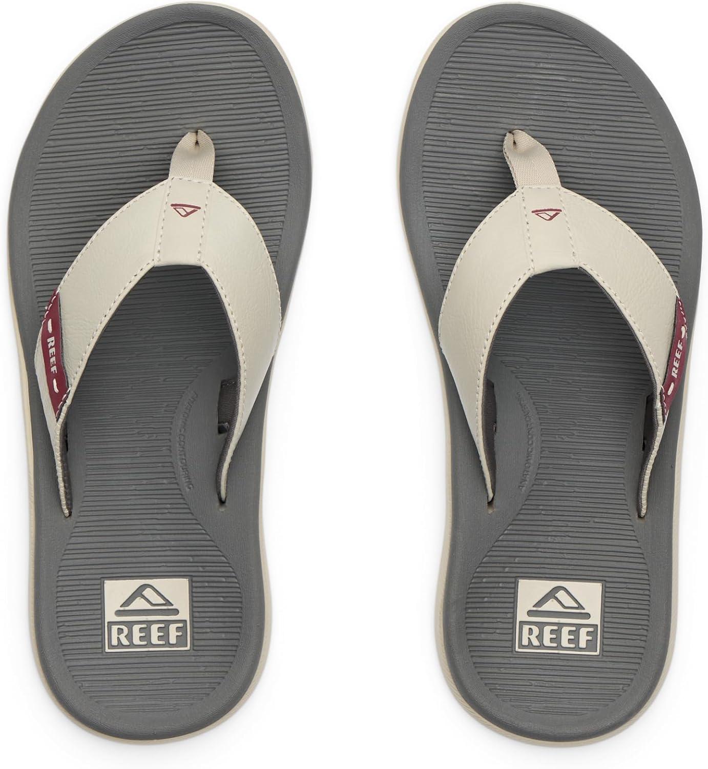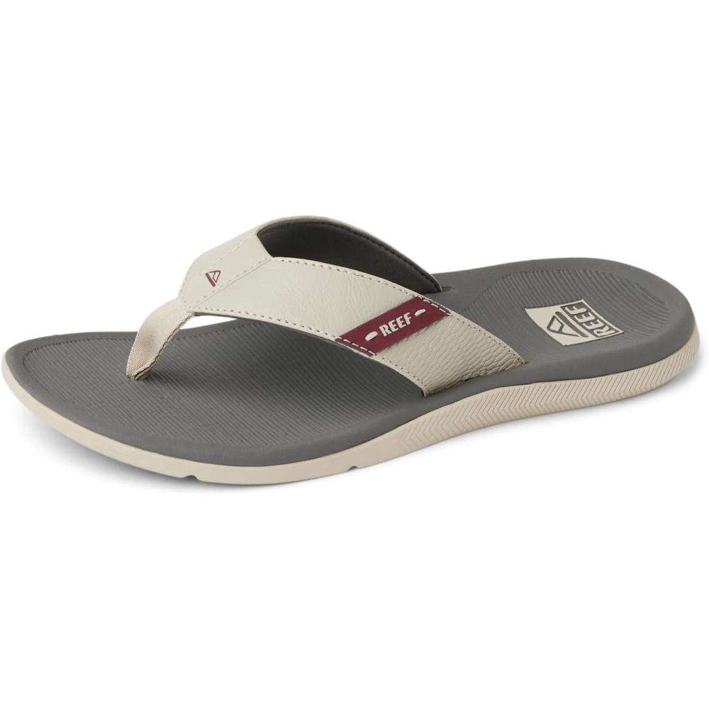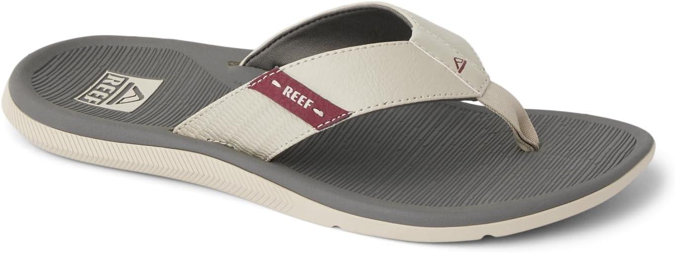 REEF Santa Ana Men’s Flip Flop, Arch Support, Water Friendly, Non Marking Outsole(Tan/Grey/Maroon)