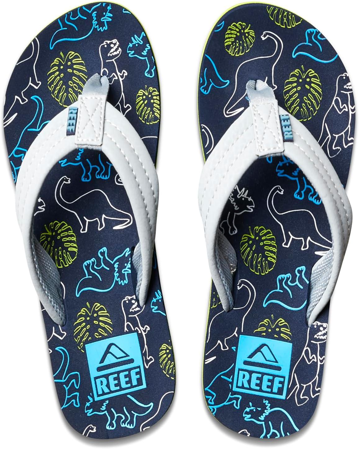 REEF unisex-child Kids Ahi Beach(Navy/Grey Dino)
