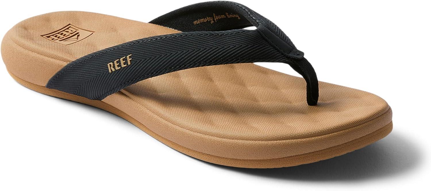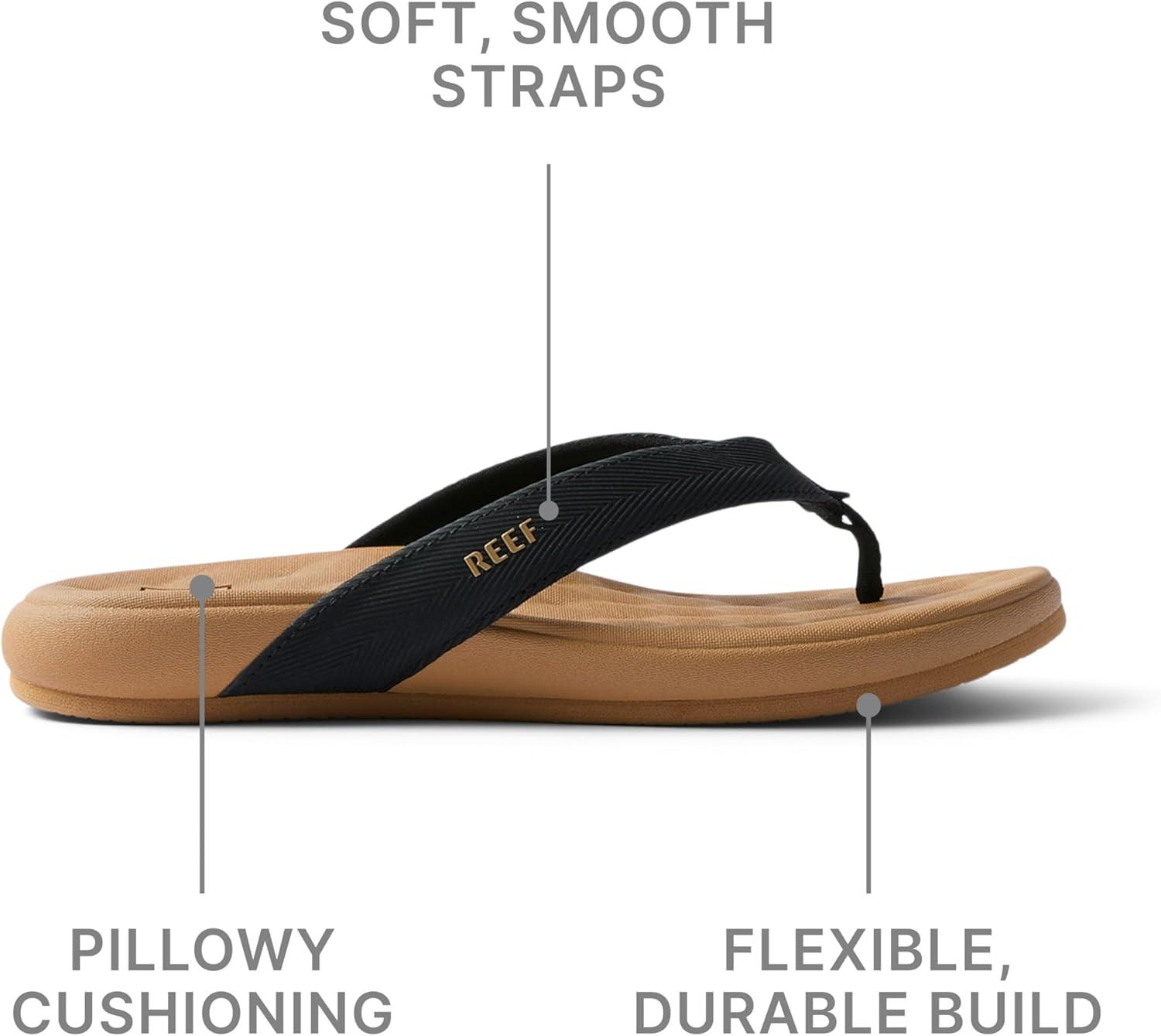 REEF Women’s Cushion Melody Flip Flops(Black/Tan)