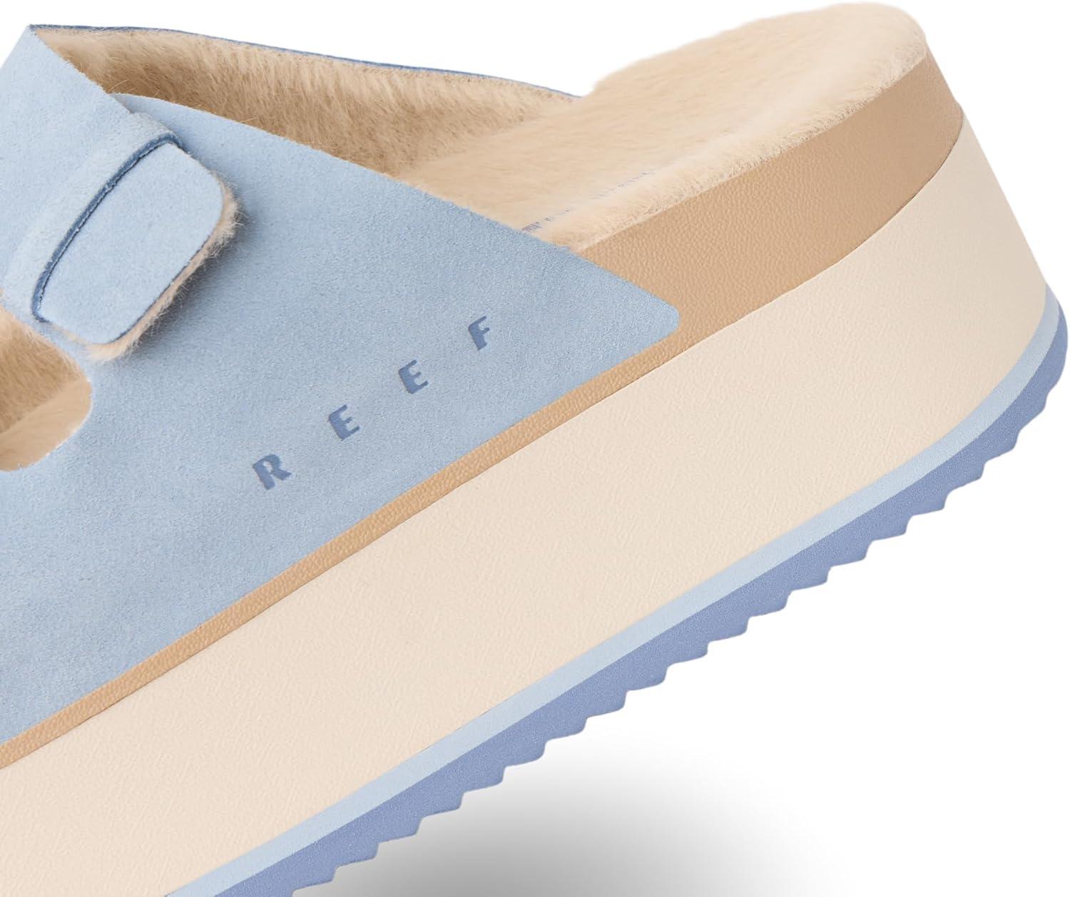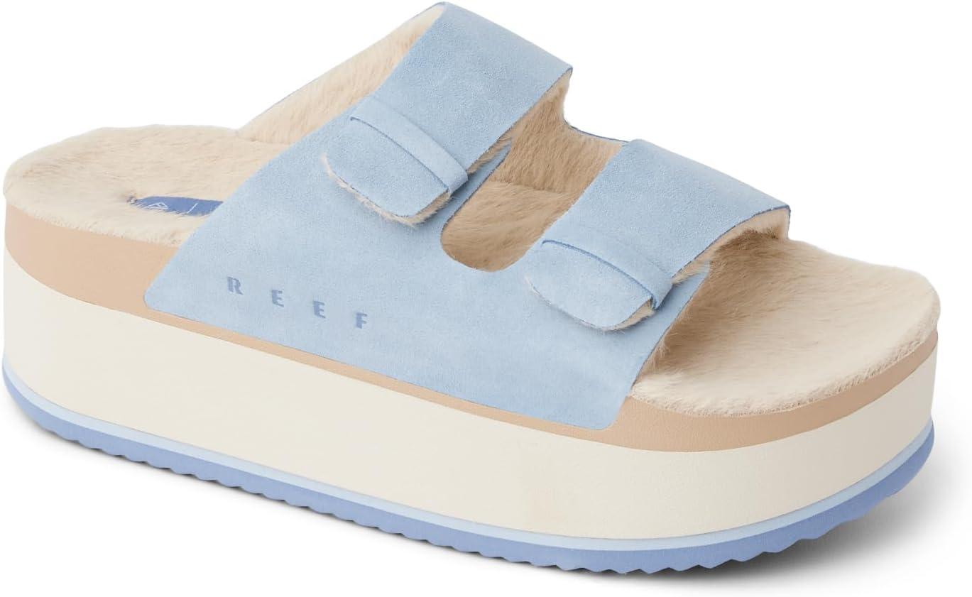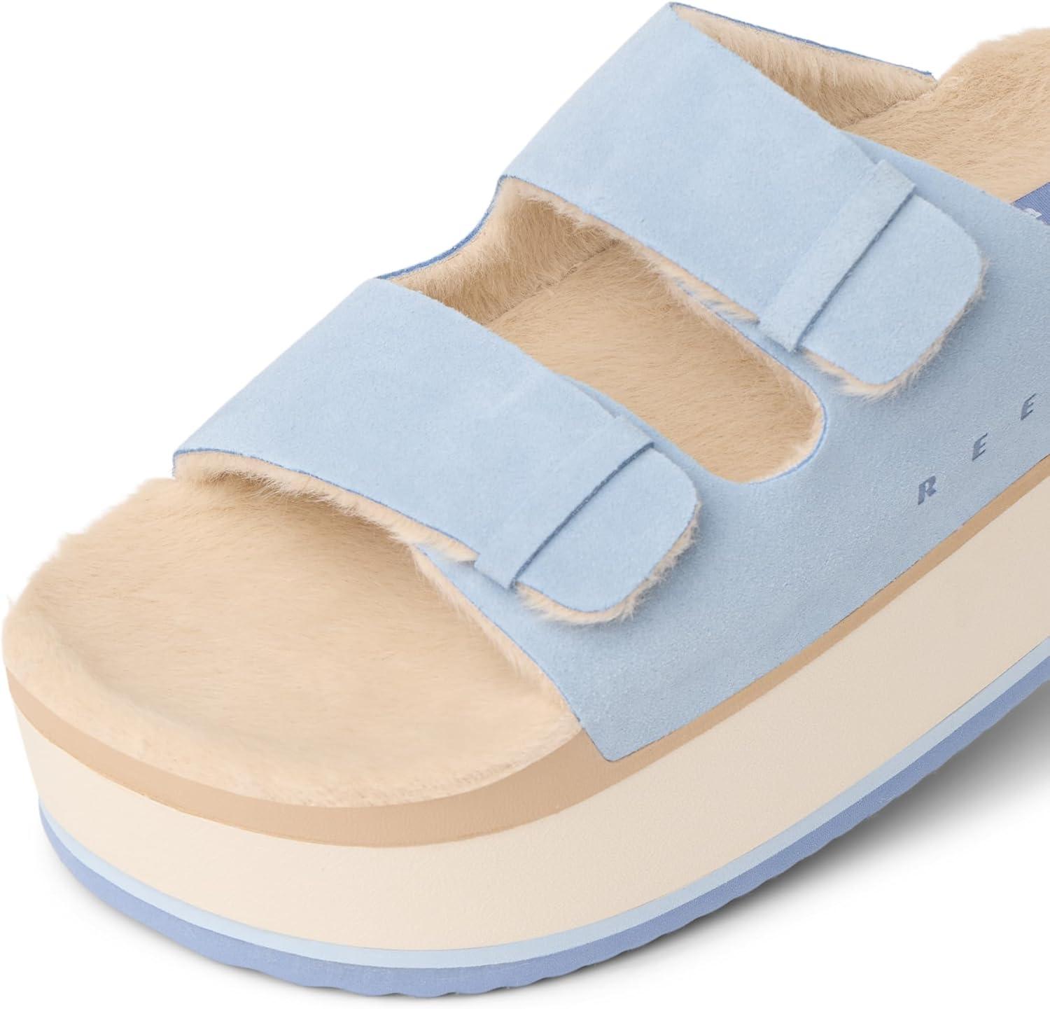 The Ojai Ciara is an approachable platform sandal with sophisticated comfort. It combines an anatomical faux fur footbed with a premium suede upper and height.